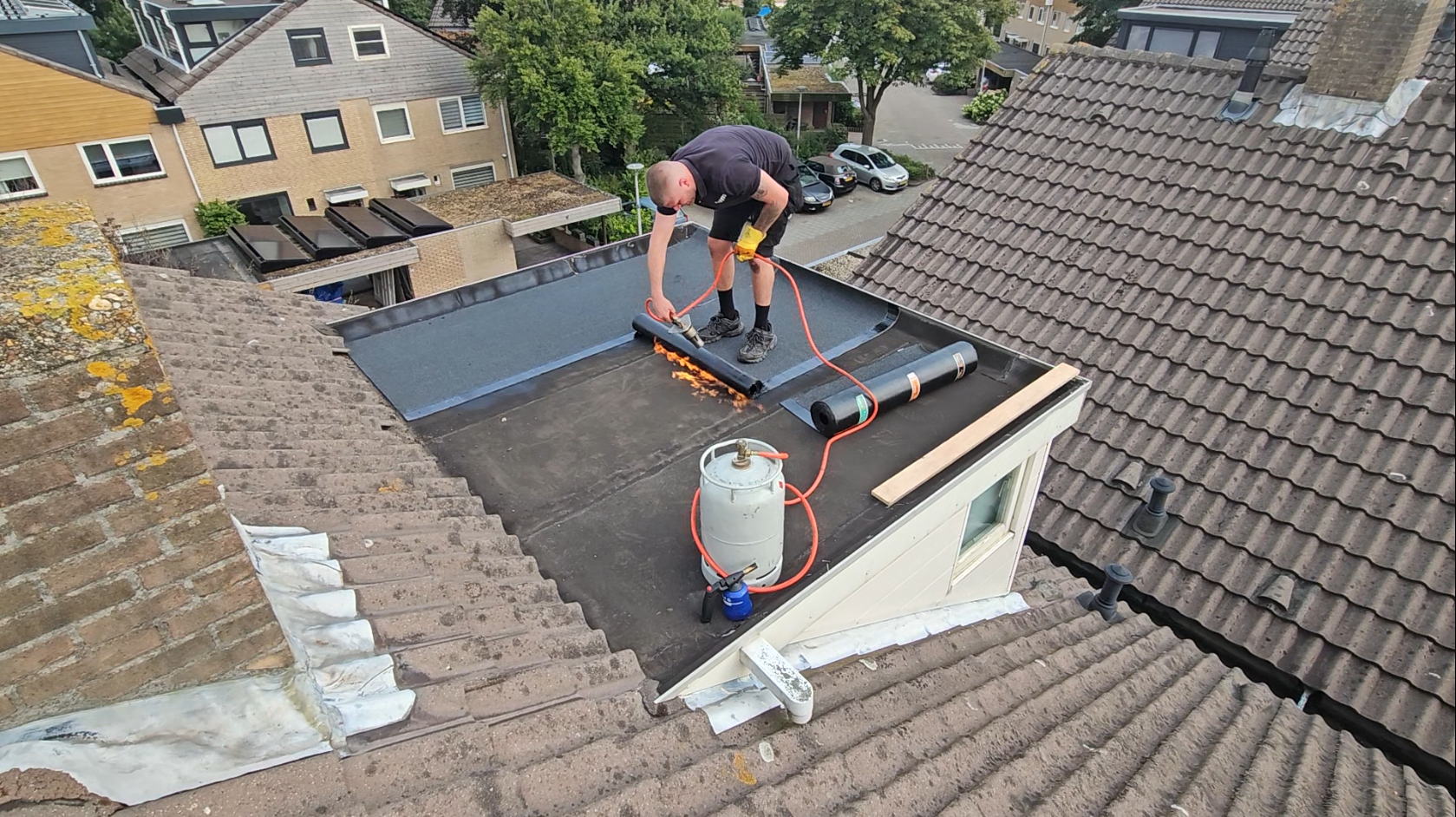 Bitumen dak branden.